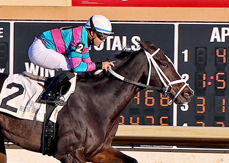 Churchill Downs and Oaklawn Park. Her connections took a gamble by entering her in a $50,000 claiming race at Churchill Downs which she won easily, but they lost her to trainer Joe Sharp. Taking advantage of her Ohio registered status, he has crossed the border to Ohio with Generous Lover four times and now has stakes wins in the Vivacious on the turf at Belterra, the 9-furlong Best of Ohio Pay the Man at Thistledown and the Best of Ohio Distaff going 1 1/8 mile at Mahoning. Her only loss inside the Buckeye borders came in a close-call neck decision against the state’s top sprinter Back to Ohio in the Scarlet and Gray. Generous Lover now sports a record of 12-6-1-2 for $319,970.